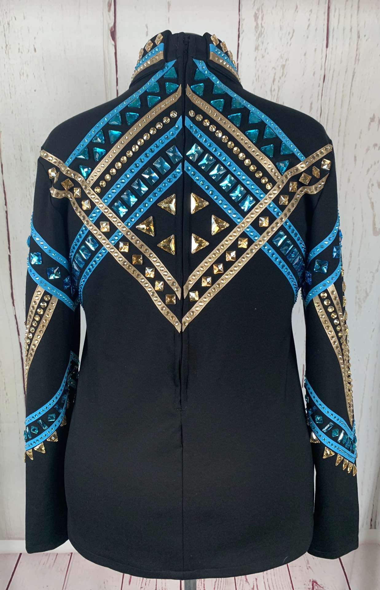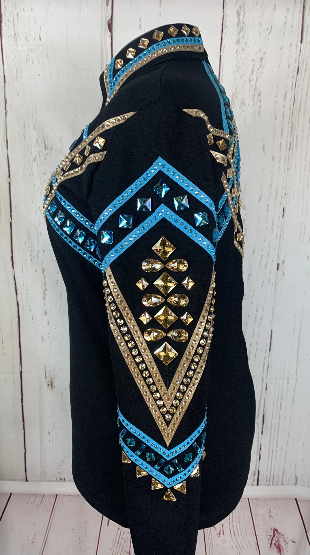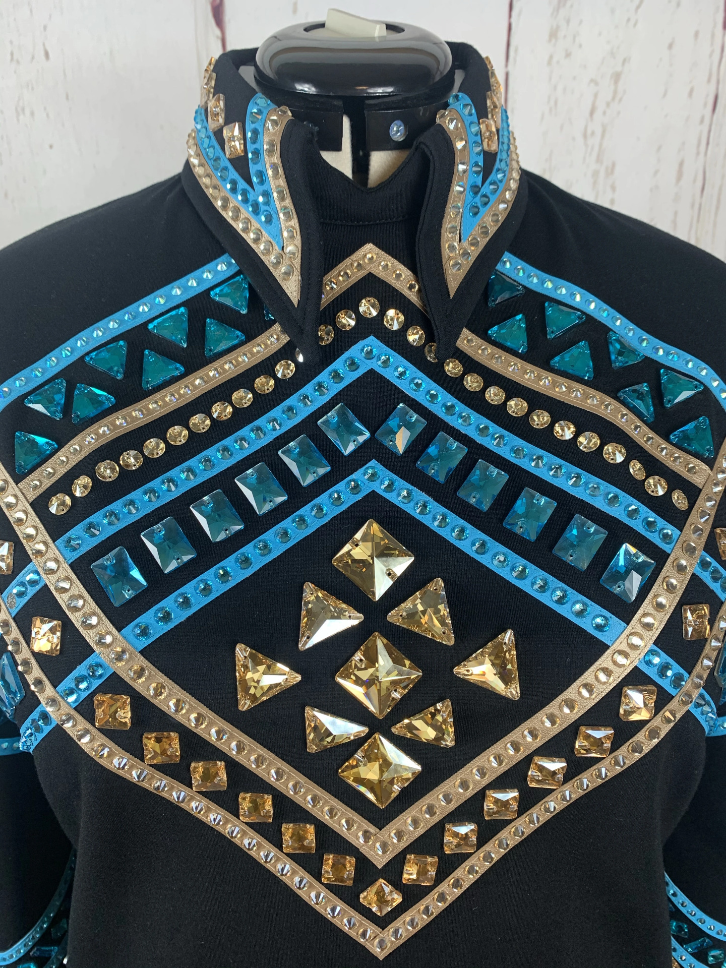 Stones: glas stonesSize: 46 (laying flat and unstretched)bust: 106cm, waist: 102cm, hip: 114cm, back length: 69cm, shoulder width: 46,5cm, arm length: 65cm, arm width: 38cm
